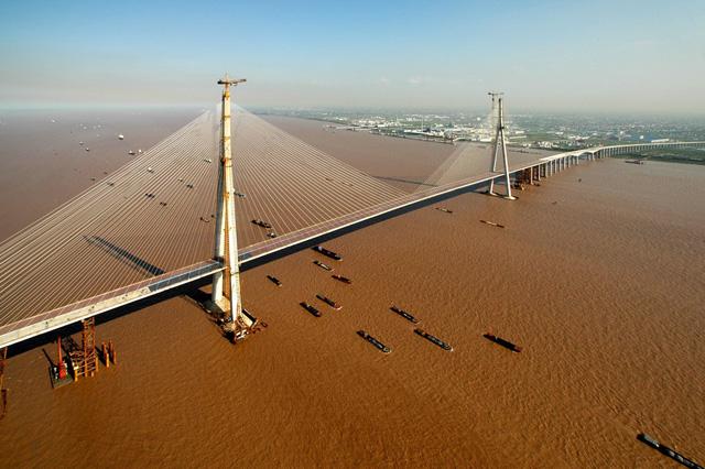 蘇通大橋的建設創造了1088m斜拉橋世界第二最大跨徑,300.4m世界第二高索塔,131根長約120m、直徑2.8m/2.5m世界最大規模的群樁基礎,577m世界最長斜拉索四項令人驚奇的世界紀錄。