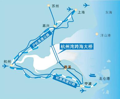 杭州灣跨海大橋曾保持中國世界紀錄協會世界最長的跨海大橋世界紀錄,現為繼美國龐恰特雷恩湖橋和青島膠州灣大橋之后世界第三長的橋梁。混凝土用量達到了245萬立方米,相當于再造八個國家大劇院,它的用鋼量達到了80萬噸,相當于再造七個鳥巢。