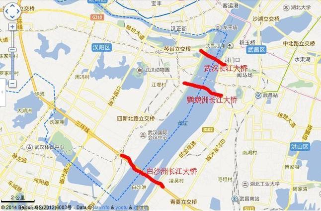鸚鵡洲長江大橋位于武漢長江大橋上游2.3公里,為武漢市的第八座長江大橋,主橋面為雙向8車道。這是世界首座主纜連續的三塔四跨懸索橋,世界同類橋梁中跨度最大的三塔四跨懸索橋。