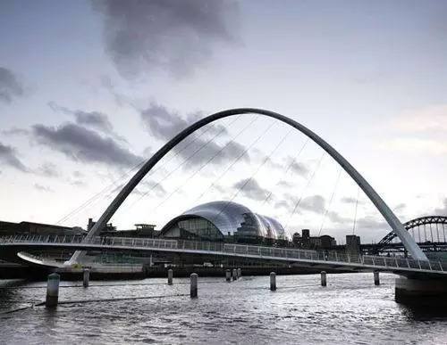 英國蓋茨亥德千禧橋(Gateshead Millennium Bridge)是一座傾斜橋,專為行人和騎自行車的人們通行。它橫跨英國泰恩河,并通過壓力揚吸機來進行旋轉,以便讓船只通過。